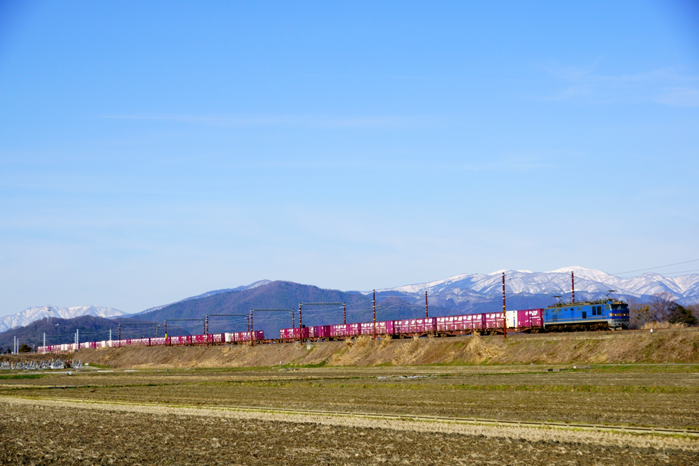 JUGEMテーマ:鉄道写真 いつもなら午前中で帰りますが、あまりにもいい天気なのでなので夕方までいることにしました。 場所を変えていつもの長浜までEF510を撮りにでかけました。 後方の山にはまだ雪が残っていました。
