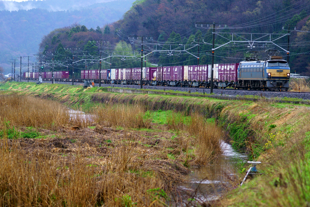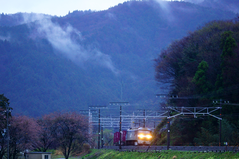JUGEMテーマ:鉄道写真 まだまだの桜が多い中、一本の木だけはたくさん花が開いていました。 そこにEF66が通過して行きます。