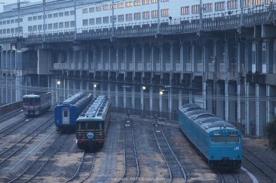 朝7時前の宮原 今は網干総合車両所宮原支所というのが正式名称らしいですね。 昔はここに昼間はブルートレインの車両などが並んでおりました。 今は国鉄時代の車両が並ぶ数も少なくなり、こんな光景も あと数年かもしれませんね。 2017/3/2 EOS7Dmk2+70-300 1/100 F5.6 ISO1600 JUGEMテーマ:鉄道写真