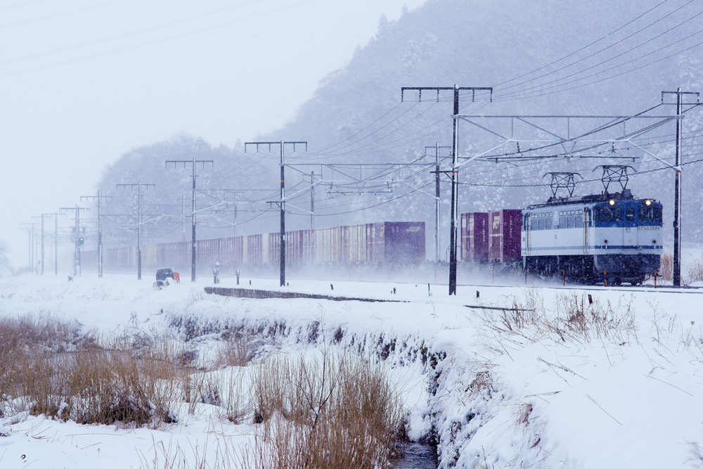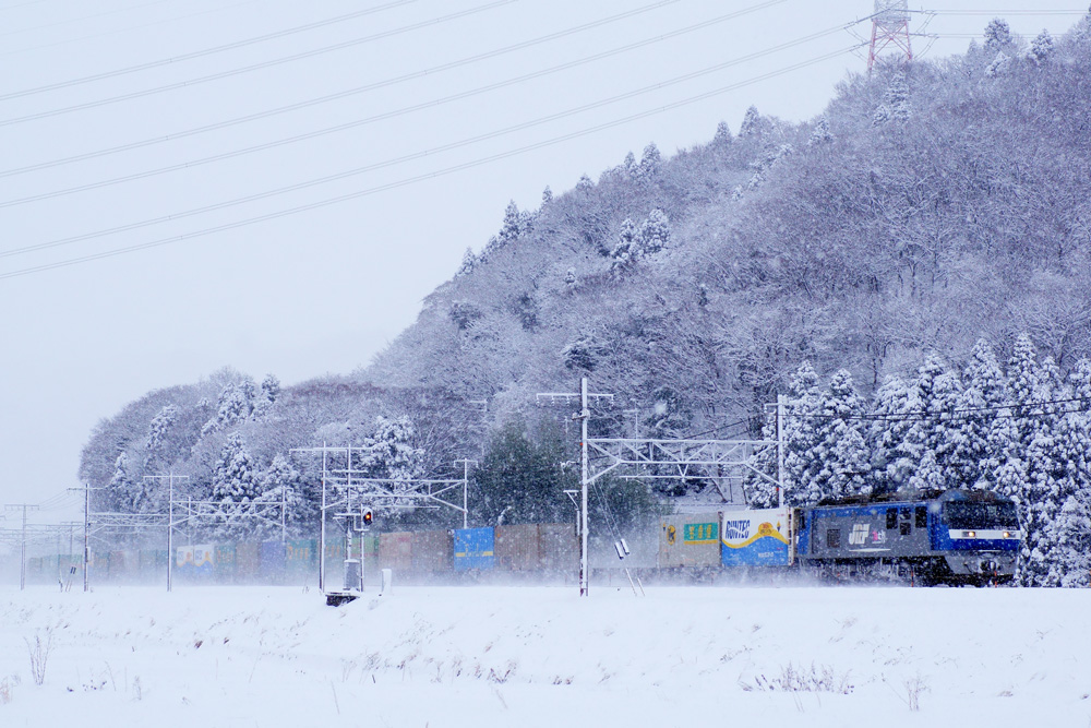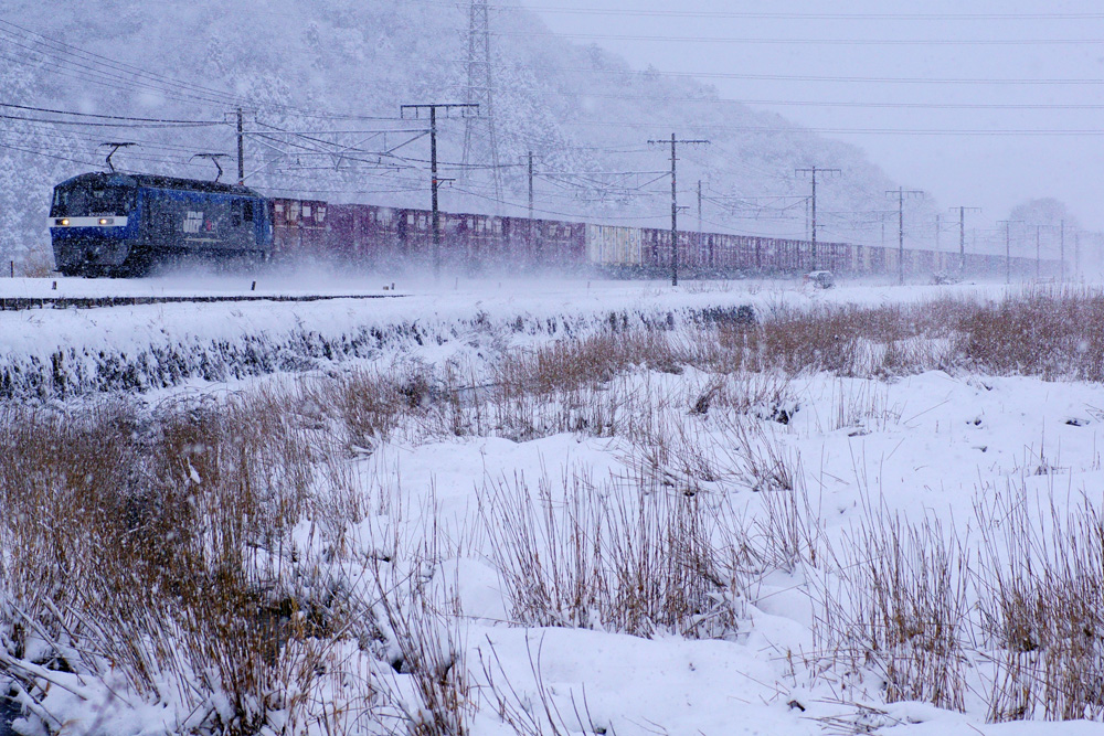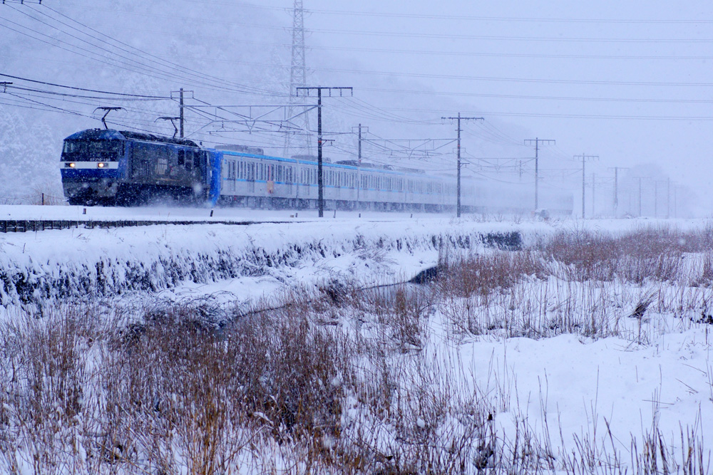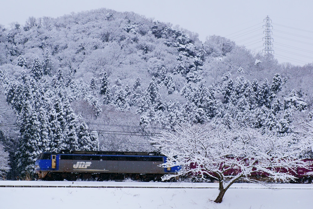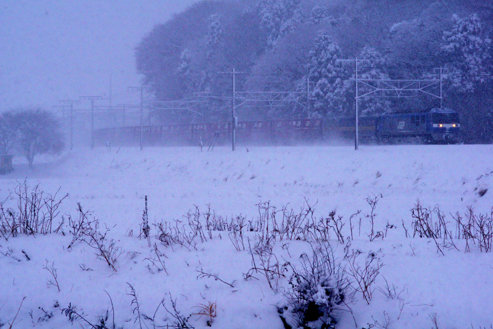 JUGEMテーマ:鉄道写真 唯一のEF65でやってくる5087レを雪の中で撮影できました。 いつもなら、昼ごろには雪が消えてしまっているのですが今日は特別でした。