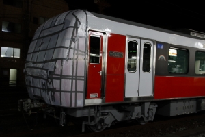 新しい車両の先頭車にはこのように顔が隠されています。 これを見た鉄道に興味ない人は「事故にでもなったん?」と 言われました・・・。 確かにそんな風に見えないこともない。 そう言われると包帯を巻いた顔にも見えるかも・・・。 EOS7Dmk2+17-70F2.8-4 1/20 F5.6 ISO3200 JUGEMテーマ:鉄道写真