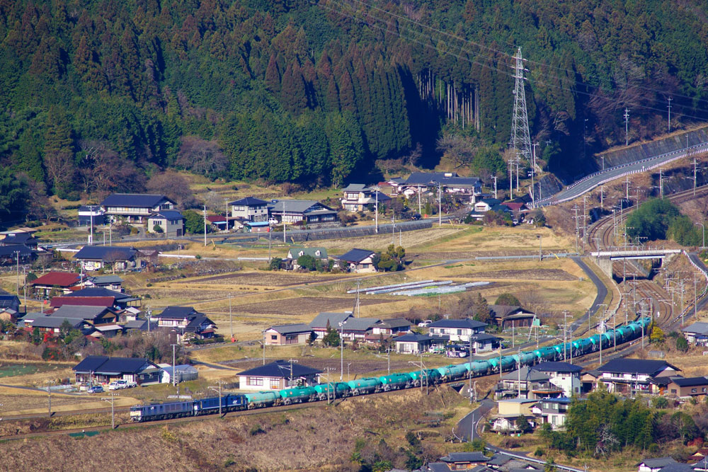JUGEMテーマ:鉄道写真 冬は空気が澄んでいるので遠くまで見渡せます。 最近できた道から坂下の町が見えます。 この日は1019+1049で3088レがやってきますので他にも同業者がお見えでした。