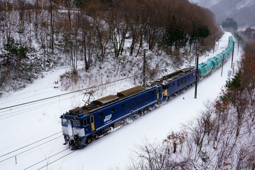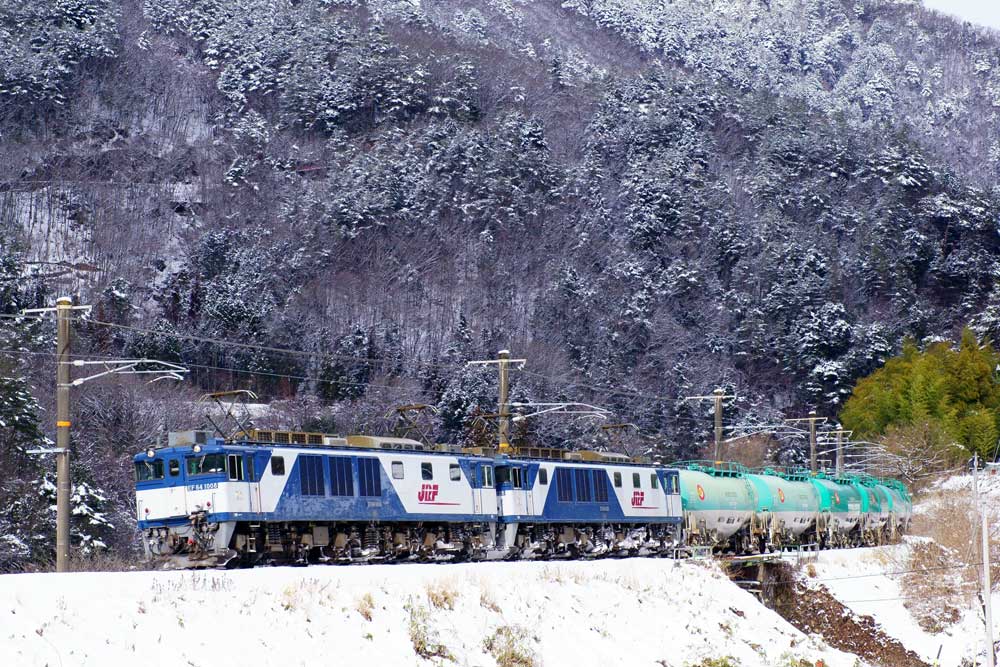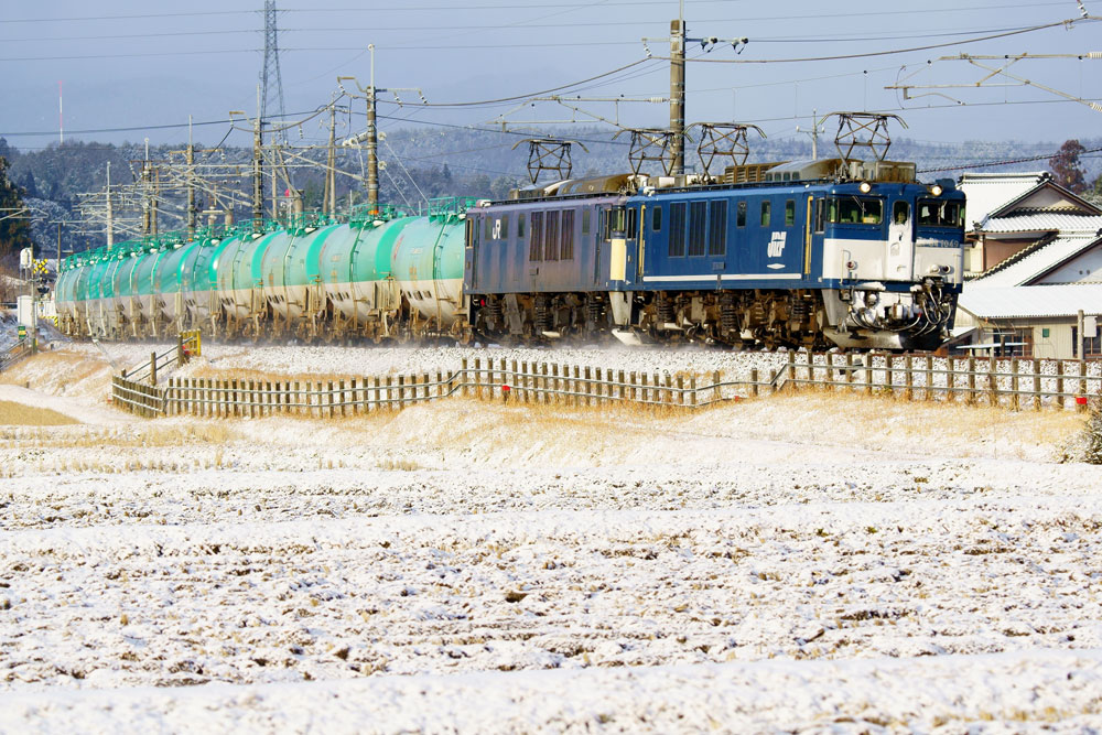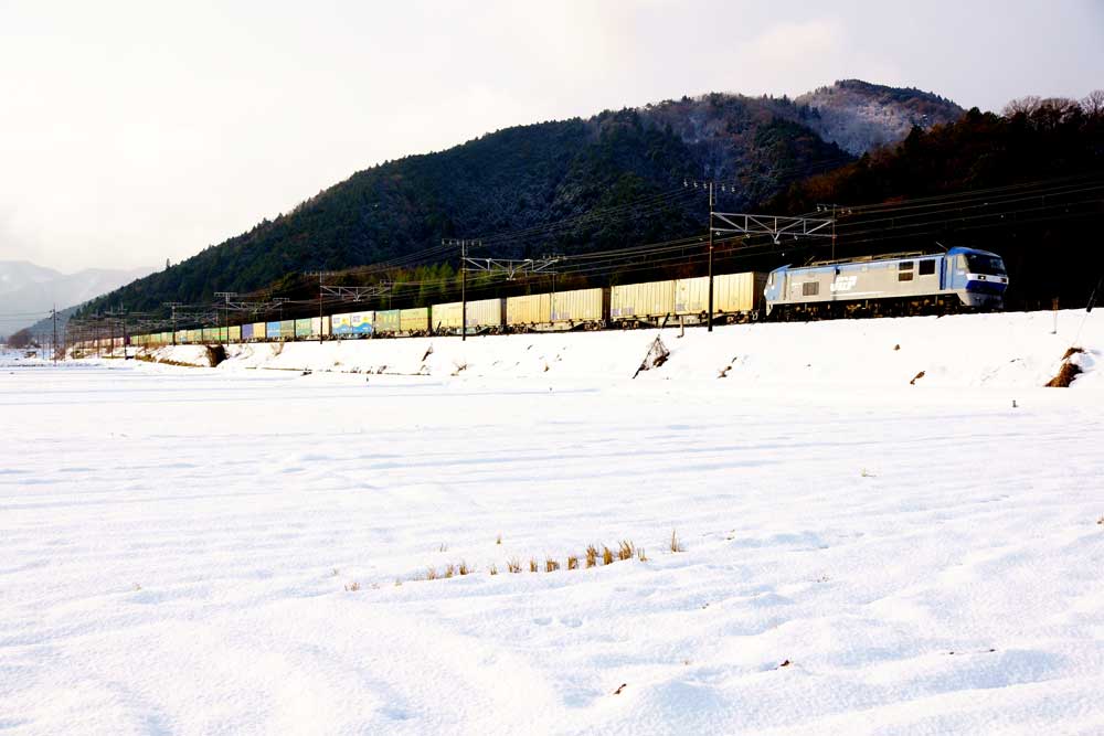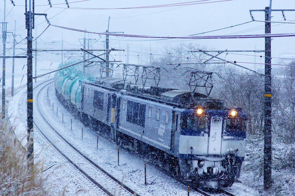 JUGEMテーマ:鉄道写真 今年初めて東海道に行きました。ある程度雪がありことを思いながら到着するとまずまずの積雪でしたが、雪が湿って重いので積雪のわりには進むことが結構大変でした。 天候も不安定で曇りかと思えば急に吹雪になり時として日が射したりしていました。 ただ、雪の影響ではないようですが、8時台の貨物がやってきて以来、さっぱりやってきませんでした。