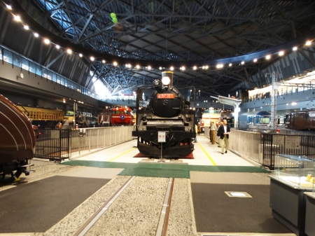 JUGEMテーマ:鉄道写真 どう云うわけか?、足元のレールの途中に緑色したマットが敷いてあるのでございますけれど。 実は。 この、蒸気機関車は。 ターンテーブル!の上に置いてあるのでございます。 詳しい時刻表は、来館者様ご自身でご確認をいただきたいのでありますけれど。 ある時刻になりますと、汽笛を鳴らしながら、転車台が回転を始め。 ご覧になっておいでの、オアニイサンやオネエサマたちが目を回して引っくり返る!というシーンが。 ごほ。 ご見物のみなさまが、スマ...