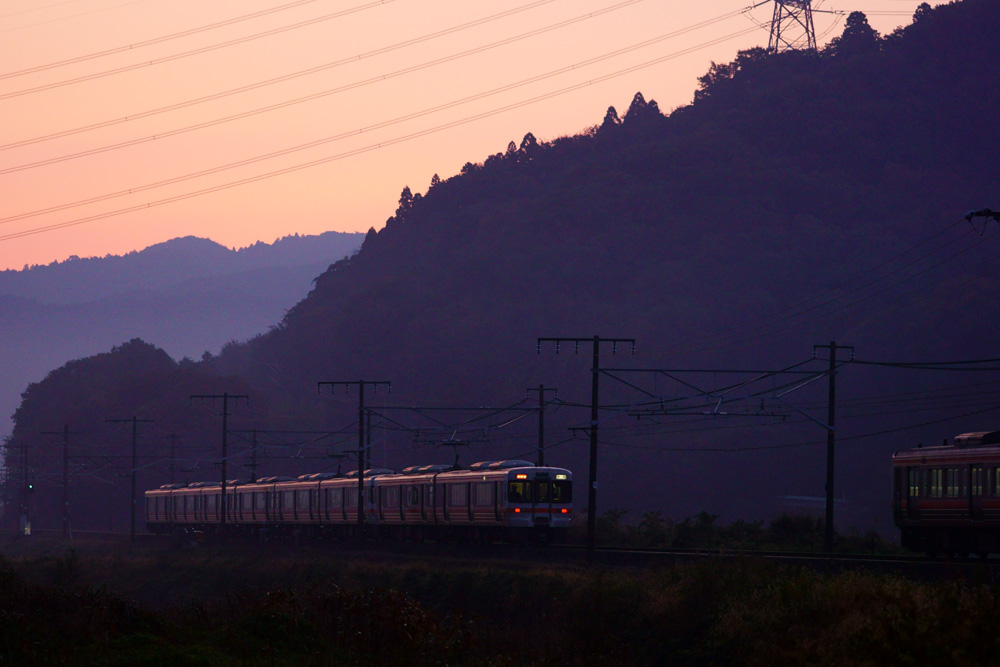 JUGEMテーマ:鉄道写真 10月は天気が悪くて満足な撮影ができませんでした。 後半になってようやくいい天気になってきましたが、朝から雲ひとつない天気というわけではなく、気がつけばもう11月でした。 天気がよく、乾いた日には日の出前に空かピンクになる場合があり、今日はそんな日でした。