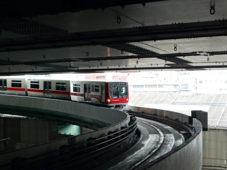 JUGEMテーマ:鉄道写真 Train of Saitama New Urban Transit. 「鉄道博物館駅」方向から、「大宮駅」のプラットホームへと入線してまいりますニューシャトル。 元々ありました「大宮駅ビル」に増設工事をしたのではなかったか?と、確証は無いのですが。 想像を逞しくする、モノノケ館長。 だって、さぁ〜〜。 コレ、見てよ! 線路(路盤)は90度近くカーブしてるし。 アタマの上には、駅ビルの、なんか?の設備が覆い被さり。 足元には、駅ビルのバックヤードと、国鉄大宮工場...