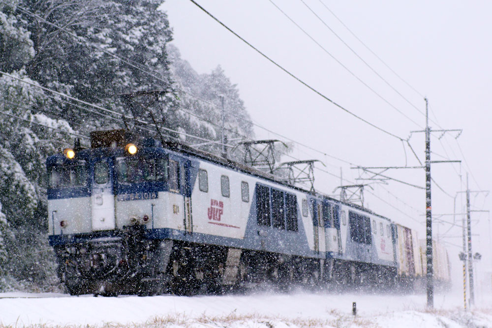JUGEMテーマ:鉄道写真 今年は暖冬で雪景色もあんまり期待できないようです。 北部に行ってそれほどの雪ではありませんでしたが、南にいくにつれて雪が降り出しみるみる積もって来ました。 ちょうど時刻的に81レと5875レがやってきます。期待通りに雪煙を上げて通過して行きました。