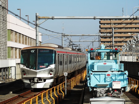 JUGEMテーマ:鉄道写真 つくばエクスプレスの電車(列車)が通り過ぎて行く横に、ライトブルー塗装の小型ディーゼル機関車が停まっております。 この路線は比較的、新しい路線でもあり、有名観光地へ行くわけでもなしで、関東にお住いの来館者様でもご関心が薄いのではないか?と想像されます。 おまけに、東京側の始発駅は秋葉原の地下駅!とあって、江戸っ子の眼に触れるチャンスも少ないというハンデ?を背負わされているのでございます。 首都圏の鉄道は、ほかの地域の車輌に比べて「色気の無い」デザインが多かったので...