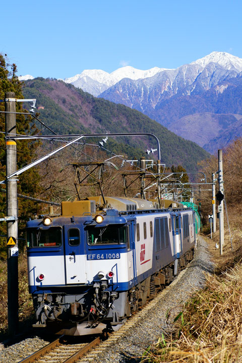 JUGEMテーマ:鉄道写真 中央西線で冬の一番の花は中央アルプスでしょうね。 晴れた日に現す姿はとても美しいです。狙い方はいろいろあるのですが意外と迷います。