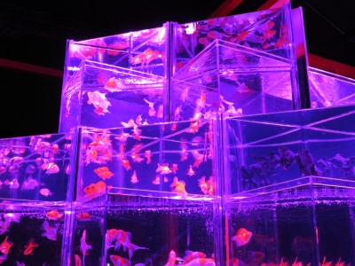 JUGEMテーマ:☆夜景☆イルミネーション☆ 大奥 御殿スペシャルバージョン これが最も華やかな作品でした。 金魚品評 円形の水盤の中を泳ぐ金魚たちを上から楽しむ作品 水中四季絵巻 日本の四季を表現したアート 花魚繚乱文様図 豪華絢爛な着物が展示されています。 夜桜BAR 「佐々木酒造」をはじめとする京都を代表する蔵の地酒が日替わりで用意され、 大安のお漬物や京風おでんなどもありました。 20...