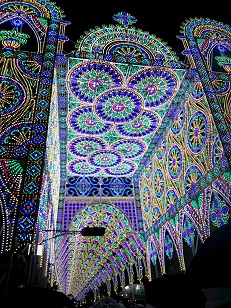 JUGEMテーマ:アート・デザイン JUGEMテーマ:☆夜景☆イルミネーション☆ 1000000人のキャンドルナイト エリアを移動します。 壁面に一言メッセージの貼られた紙袋が吊られています。 平和を願うもの、幸せに感謝するもの、さまざまです。 こちらは写真が添えられています。 上の写真で奥に見えている作品です。 歩道のあちこちにこのような作品が展示されています。 光のトンネル?くぐって写真を撮る人や撮ってもらうひとたち。 中に何かあるようで、隙間から撮影してる人もいました。 上から...