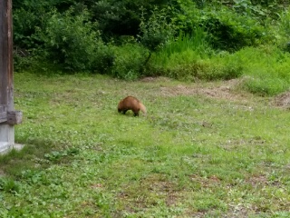 本日は曇。 午後からは激しい雨に変わりました。 貸民家みらい5号館に到着した@番頭。 車から降りようとしたら 妙な気配を感じました。 どなたですか? こちらに怯える様子もなく 堂々と歩いています。 ムジナちゃん(アナグマ)です。 エサを探しているようです。 @番頭 JUGEMテーマ:自然・登山・キャンプ