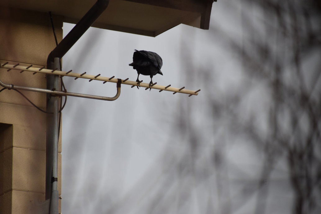 お隣のアンテナにカラスが一羽、雨宿りに来た。このカラスは雨の日によくここで雨宿りする。 そこへもう一羽、カラスがやって来て隣に止まった。 後から来たカラスが頭を下に向けた。お辞儀しているみたいに見えた。 そのままじっとして動かなくなった。何だか「ごめんなさい」しているようにも見える。さらに深く頭を下げてじっとしている。 そっぽを向いていたカラスは頭を下げているカラスが何をしてほしいのか分かったようだ。振り向いて差し...