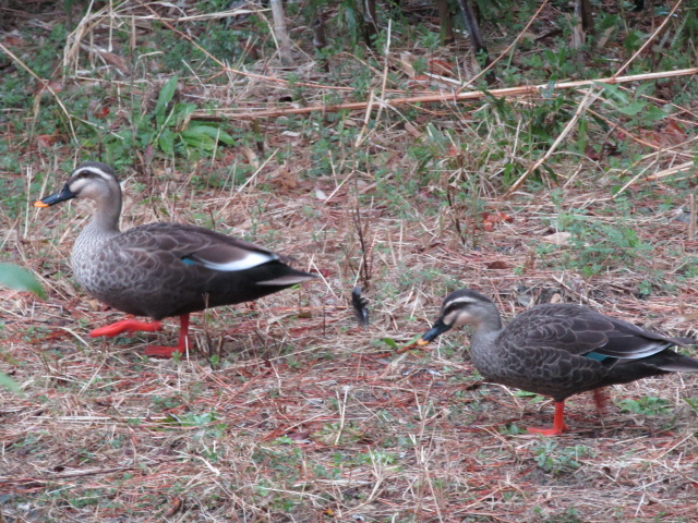 ”グェグェ〜グェグェ〜” と濁ったダミ声がする あっ! カルガモのペアだ!!! ダミ声連呼で地面をペタペタ歩く姿からは 警戒心無し!と、みた 初夏にカルガモ親子の引っ越しが話題になる 時には 行きかう車を止めてまでも カルガモの行進は 風物詩のひとつになっている これも人間に対する警戒心が無い証拠ですよねー JUGEMテーマ:浦安 JUGEMテーマ:野鳥