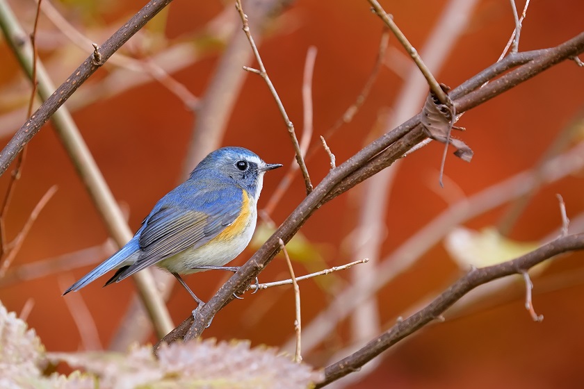 入りたての野鳥は落ち着くまでの間いろいろな行動をして環境に順応しています。 特にヒタキ(正確には小型ツグミ類)は、縄張り意識が強く確定するまでには数日〜2週間位 かかります。ルリ男くんも入ってから10日ほどが過ぎて落ち着きが出てきたようです。 その分、なかなか居所が掴めずに捜索に苦労するのですが・・・(笑)。 朝一番でいつもの場所に出てきてくれました。 小枝にとまったり・・・。 藪に入ったり・・・。 ...