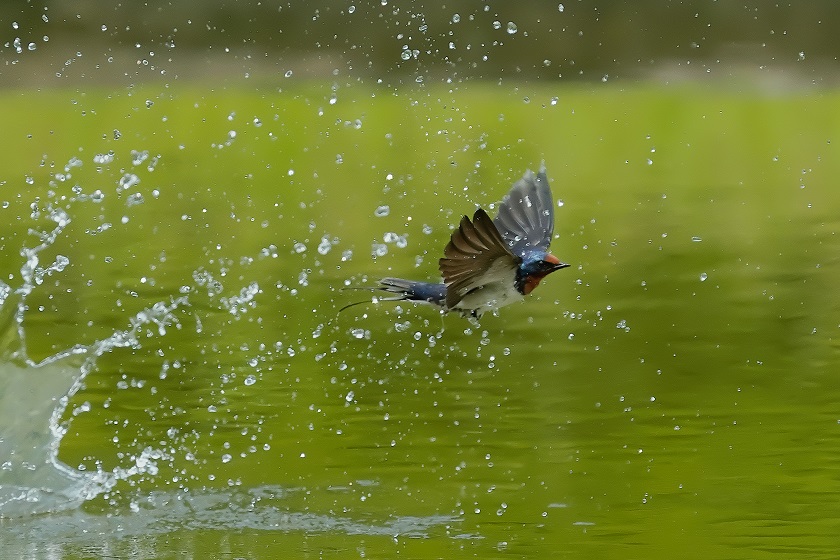 昨日も今日も目新しい鳥さんには全く会えず仕舞い。 相手をしてくれるのは専らツバメさん。 カラス・ヒヨドリ・ムクドリではチョットねぇ・・・。 でも、大空を見上げるとサシバが飛んでいました。 羽根の感じからは霊園で見た奴と同一個体かも・・・。 バッシャーン!!! ツツジの映り込みとともに・・・ 成鳥のスピードは半端ないので近くに来ると厳しいですね・・・ コイツは至近距離...