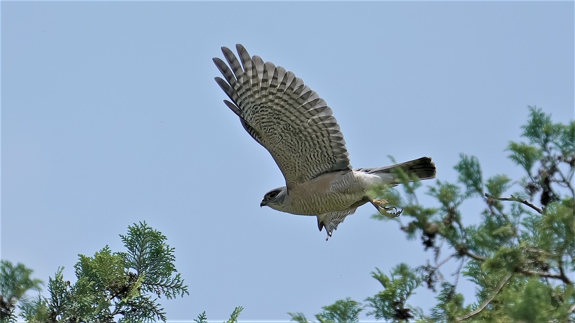 今日もツミのトビモノで楽しんできました。 ツミ(オス)の飛翔です。天気が良すぎると顔の印影が強く出過ぎるのでなかなか目が入りませんねぇ。 定位置に戻ってきました。「お帰り〜!!!」 ツミ(メス) の飛び出しです。 オスと一緒に遠くに飛んでいきましたが間もなくご帰還。 ビル屋上のアンテナが・・・。 競うように高空をツバメが飛んでいます。 オナガも・...