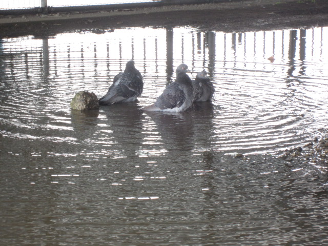 一気に夏がやってきた昨日〜 楽しそうに〜三羽の鳩が水浴び中 鳩たちはず〜〜と飽きる事無く 何回も 長いこと水をバシャバシャ💦 ”烏の行水”っていうけれど 鳩は ”鳩の長風呂”です 仲良くピッタリ寄り添い飛沫飛び回りの水浴び ソーシャルディスタンスがとられていません! 蜜です!蜜☢ JUGEMテーマ:浦安 JUGEMテーマ:野鳥