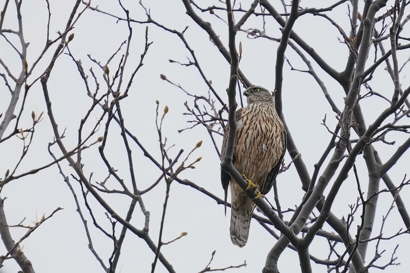 本日は全日本サーフの役員会に出席して午後からホームグラウンドへ。 ポイントには鳥友の皆さんがミソッチ出現を待っておられました。 本命は数回は出てきていたようですが満足する撮影は今ひとつのよう でした。2時を回ると出現率がかなり下がるので私はパトロールに。 メジロ・エナガ・シジュウカラなどが群れていたので営巣状況を確認 していると上空にオオタカの姿が。 相変わらずカラスを追い回しているのは「オオタカ若」でした。 高木の天辺近くにとまったので見通せる開けた場所から撮影開...