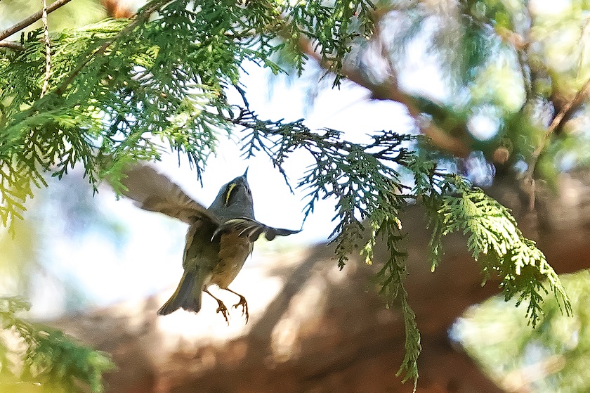 本日は高い木の上で飛び回るキクイタダキ。 体長10?の鳥を10m位から撮影するのですから チト無理がありますねぇ。 せめて7〜8m程度であれば良いのですが・・・。 画質は極めて悪いのですがご容赦下さいませ。 何とか黄色のトレードマークは写りました。 ホバリングを真下から・・・迫力ないなぁ。 次第に低い所に来ているようなので「次回はもう少しマシな写真を」 と思っているブログ管理人です。 デハッ、マタッ。 &...