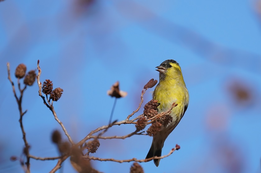 撮り初めは何処に…などと考えてみても、老々介護の身では自由な時間は 限られるのでお手近な所で妥協するしかありません。 ということで、実家の地元M公園と自宅の近所R園で撮り初めと鳥友との 新年賀詞交換と相成りました。今冬は何処も「鳥が薄い」というのが現状 で普段はあまり撮らない水鳥なども被写体に・・・(笑)。 まずはM公園のマヒワ。 いつもは高木の天辺に居ますが、この日は低いハンノキに。 アオジも何か声を出している...