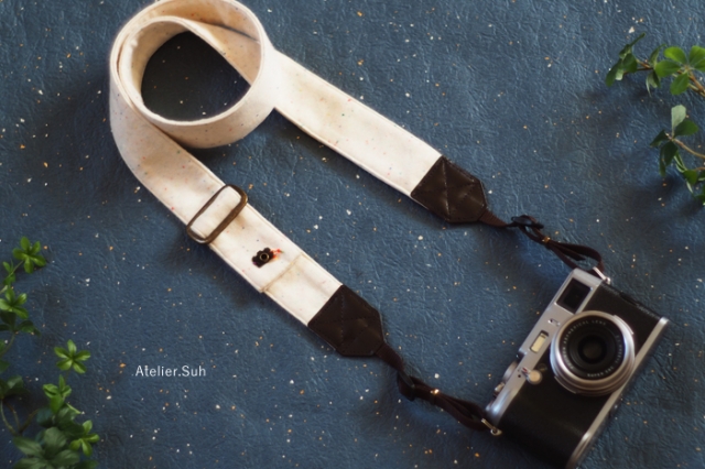 新しいカメラストラップ「Natarie(ナタリー)」できましたー! クリスマスにぎり間に合ってよかった。 と言いますのも、テーマは「ホワイトクリスマス」、オフホワイトのスウェット生地に、ピンク、イエロー、ブルー、グリーンなどのカラフルなネップ(つぶつぶ)が織り込まれた、イルミネーションみたいでかわいい生地を使っています。 ワンポイントのカメラのチャームも、ビーズのフリンジをつけた細かいディティール。 どれくらいかわいいかっていうと、ナタリー・ポートマンくらいかわい...