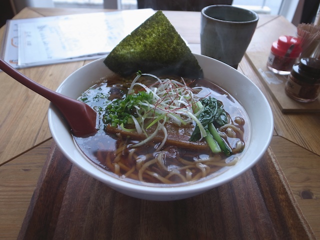 JUGEMテーマ:RICOH GR digital 3 昼ごはんは、浦添の麺や和楽へ。 京都風ラーメンのお店です。 中華そば(並)600円と九条ねぎ大盛り+50円に。 九条ねぎ大盛りはざるに入れられて別添です。 ねぎたっぷり〜。 背脂と七味の見た目とは裏腹に、鶏だしがきいたあっさり系でした。 しっかりコシのある細麺もうまいですね。