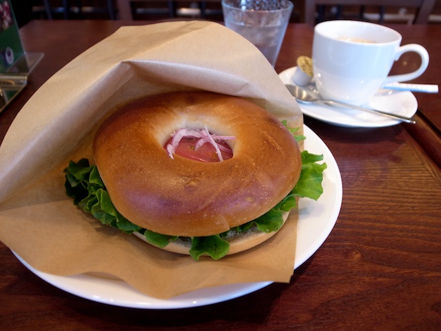 JUGEMテーマ:RICOH GR digital 3 朝ごはんは、那覇のSHINKAへ。 ツナと野菜たっぷりベーグルサンド、コーヒーとセットで400円。 オキコパンの経営するパン屋さんなのですが、もっちりベーグルが美味しいです。 ボリュームもありますね。
