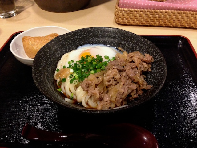 JUGEMテーマ:iPhone 5 夜ごはんは、ひさしぶりに那覇のさぬき麺天へ。 外は風が冷たく寒いけど、 ツルッツルしこしこの麺が味わいたくて冷たい牛肉玉子うどんに。 いなりが1個ついて760円。 美味しいだしに、甘く煮込まれたすき焼き風の牛肉が合います。 ものすごい勢いで完食してしまいました。 初めて頼んだいなりがお米がたっていて、これまた美味しい!!