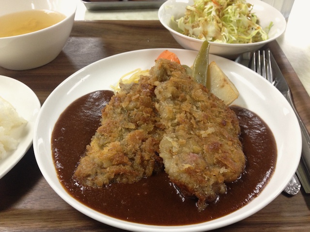 JUGEMテーマ:iPhone 5 夜ごはんは、港町食堂で牛フィレ肉のカツレツセット1000円。 ふんわりした衣に覆われた、柔らかな薄切り牛フィレ肉がうまい。 デミグラスソースが今日も美味しいです。 初の1000円台メニューでしたがこれなら納得です。