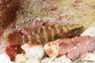 JUGEMテーマ:水中写真 その辺にいる普通のハゼです。 ハゼには詳しくないので一応、撮ってみました的なところ。 では、他の魚には詳しいかと言われると・・ 条鰭綱 スズキ目 ハゼ科 オオモンハゼ属 カタボシオオモンハゼ 石垣島 荒川沖 水深10m サイズ3cm 2019年7月 撮影:Don☆tacos