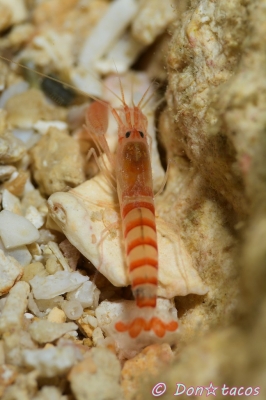 JUGEMテーマ:水中写真 細長いので、どうやって撮ったらいいかのか? 写真のバランスが悪くならないように、丸いものに乗せるか? 十脚目 抱卵亜目 コエビ下目 テッポウエビ上科 モエビ科 トガリモエビ属 トガリモエビ 石垣島 竹富沖 水深10m サイズ3cm 2016年5月 撮影:Don☆tacos 沖縄本島 名護沖 水深10m サイズ3cm 2015年9月 撮影:Don☆tacos