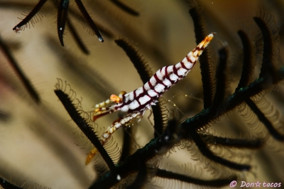 JUGEMテーマ:水中写真 ウミシダを住みかにするエビですが、ウミシダヤドリエビとは属が違うみたいです。 バサロではなくバサラ、バサロの方が知られていない?分かった人は昭和の人か? いやそもそもこの写真はバサラなのか?バサラと思い込んで撮っていたけど・・ 十脚目 抱卵亜目 コエビ下目 テナガエビ上科 テナガエビ科 カクレエビ亜科 ツノメヤドリエビ属 バサラカクレエビ セブ マクタン島 マクタン沖 水深10m サイズ1cm 2016年1月 撮影:Don☆tacos