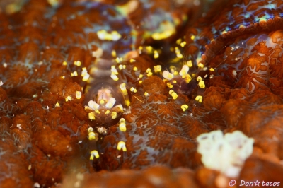 JUGEMテーマ:水中写真 名前が覚えられない、なおかつ舌を噛みそう。 この鎌状赤血球にいるヤツはウィルエウフィリウスでいいのかな? 十脚目 抱卵亜目 コエビ下目 テナガエビ上科 テナガエビ科 カクレエビ亜科 イソカクレエビ属 ウィルエウフィリウス(学名:Vir euphyllius) 西表島 上原沖 水深10m サイズ1cm 2017年8月 撮影:Don☆tacos