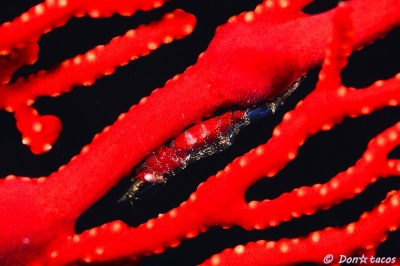 JUGEMテーマ:水中写真 ちょくちょく見かけて、だいたい逆立ちしているエビ。 ホヤとかイソギンチャクの付近にいるような気がします。 十脚目 抱卵亜目 コエビ下目 テッポウエビ上科 モエビ科 ヒメサンゴモエビ属 イソギンチャクモエビ セブ マクタン島 マクタン沖 水深10m サイズ1cm 2016年1月 撮影:Don☆tacos