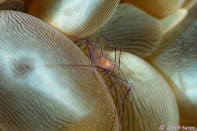 JUGEMテーマ:水中写真 イソギンチャクと名前の付くエビは色々いるけど、ザ・イソギンチャクです。 3cmはないかもしれないけど大きさのイメージはそんな感じ。 十脚目 抱卵亜目 コエビ下目 テナガエビ上科 テナガエビ科 カクレエビ亜科 ホンカクレエビ属 イソギンチャクエビ 座間味島 座間味沖 水深10m サイズ3cm 2019年6月 撮影:Don☆tacos