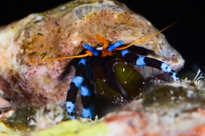JUGEMテーマ:水中写真 指輪と言うか、足輪と言うか、綺麗と言うか、凛々しいと言うか・・ 前にサンゴヤドカリはシャイと書いたけど、とてもシャイなヤツでした。 十脚目 抱卵亜目 異尾下目 ホンヤドカリ上科 ヤドカリ科 サンゴヤドカリ属 ユビワサンゴヤドカリ 石垣島 大崎沖 水深20m サイズ1cm 2015年6月 撮影:Don☆tacos