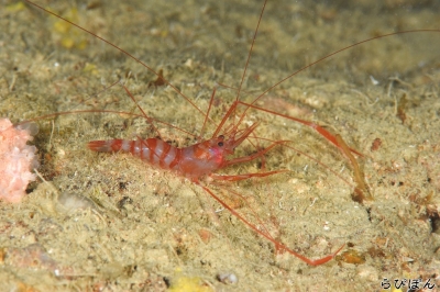JUGEMテーマ:水中写真 クルマエビ??そのものじゃなく、仲間らしい。 なんだか、長い名前だけど那覇のドルさんのブログによるとそう言う名前らしい。 いや、でも、どう見てもクルマエビか? 十脚目 根鰓亜目 クルマエビ上科 クルマエビ科 アカエビ属 Metapenaeopsis commensalis Borradaile,1899 沖縄本島 名護沖 水深10m サイズ2cm 2014年11月 撮影:Don☆tacos 十脚目 抱卵亜目 アナエビ下目 アナエビ科 Axiopsis属