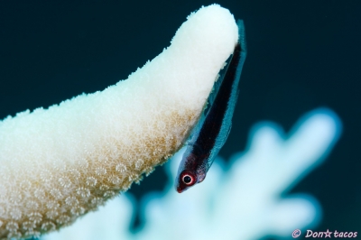 JUGEMテーマ:水中写真 襟の蝶ネクタイが特徴です。 上から撮るとオキナワベニハゼと区別つかなくなります。 条鰭綱 スズキ目 ハゼ科 ベニハゼ属 エリホシベニハゼ 西表島 上原沖 水深5m サイズ2cm 2017年10月 撮影:Don☆tacos