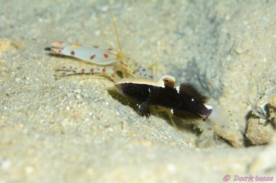 JUGEMテーマ:水中写真 ちょっと人気のオードリーです。 後ろにいるのはぶどうではなくて、ブトウテッポウエビです。 条鰭綱 スズキ目 ハゼ科 オドリハゼ属 オドリハゼ 西表島 上原沖 水深10m サイズ2cm 2017年8月 撮影:Don☆tacos