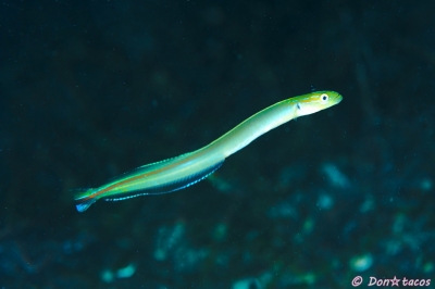 JUGEMテーマ:水中写真 ググッてみるとオレンジラインワームゴビー=ダイダイオオメワラスボとなっているのですが、 写真のヤツは真ん中あたりのオレンジのラインが薄いような気がします。 条鰭綱 スズキ目 オオメワラスボ科 オオメワラスボ属 ダイダイオオメワラスボ(オレンジラインワームゴビー) 西表島 上原沖 水深5m サイズ10cm 2017年11月 撮影:Don☆tacos