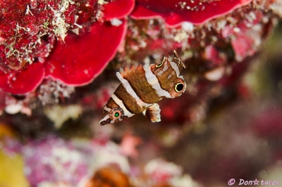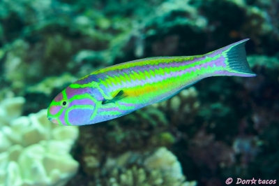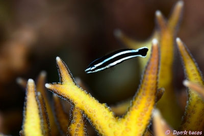 JUGEMテーマ:水中写真 小型のベラで浅場のサンゴの中をウロウロしてます。 なんだか大阪の”くいだおれ太郎”みたいな色のヤツ。 チョロチョロしてるので意外に撮影するのはムズいです。 条鰭綱 スズキ目 ベラ科 ニセモチノウオ属 ニセモチノウオ 石垣島 竹富沖 水深5m サイズ2cm 2016年9月 撮影:Don☆tacos 石垣島 荒川沖 水深5m サイズ3cm 2015年6月 撮影:Don☆tacos