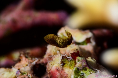 JUGEMテーマ:水中写真 ブダイのウンコです。ウソです。 シマのウンコかな〜 シマタレクチに成魚も追加したので比べてみてください。 条鰭綱 スズキ目 ベラ科 タレクチベラ属 タレクチベラ 石垣島 荒川沖 水深5m サイズ1cm 2015年6月 撮影:Don☆tacos
