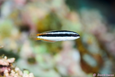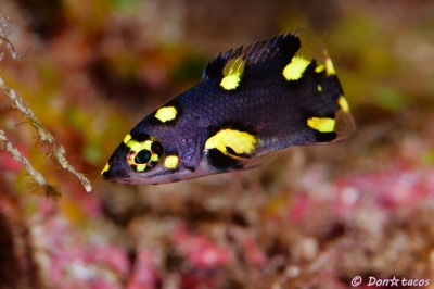 JUGEMテーマ:水中写真 幼魚は黒地にオシャレな黄色の点々が特徴。 成魚はケサのようなツートンカラーが特徴。 条鰭綱 スズキ目 ベラ科 タキベラ属 ケサガケベラ 石垣島 荒川沖 水深10m サイズ2cm 2015年8月 撮影:Don☆tacos 石垣島 荒川沖 水深10m サイズ10cm 2015年11月 撮影:Don☆tacos