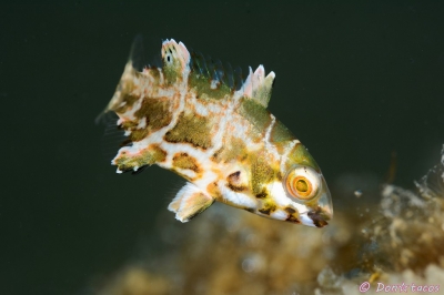 JUGEMテーマ:水中写真 こちらは黒パンツで、マンジュウイシモチの幼魚はイチゴパンツと呼ばれています。 幼魚はこれとそっくりなヒレグロベラがいます。 条鰭綱 スズキ目 ベラ科 キベラ属 キツネベラ 石垣島 荒川沖 水深10m サイズ3cm 2016年5月 撮影:Don☆tacos