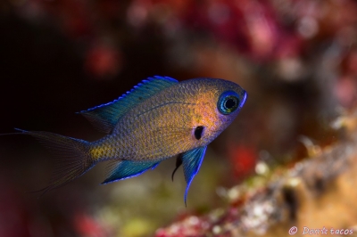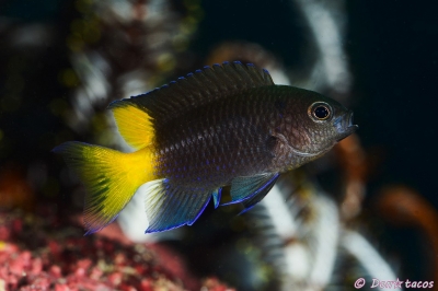 JUGEMテーマ:水中写真 ソラスズメダイSPとされたもの。 ウェッジスポットダムゼル?に似てるような違うような? 条鰭綱 スズキ目 スズメダイ科 ソラスズメダイ属 ソラスズメダイSP 石垣島 荒川沖 水深5m サイズ3cm 2014年10月 撮影:Don☆tacos