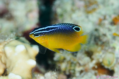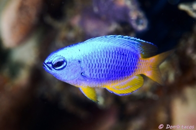 JUGEMテーマ:水中写真 スミレなんてオシャレな名前だけど、日本では見たこと無いなあ・・ 条鰭綱 スズキ目 スズメダイ科 リボンスズメダイ属 スミレスズメダイ セブ マクタン島 マクタン沖 水深5m サイズ3cm 2017年1月 撮影:Don☆tacos