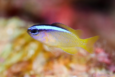 JUGEMテーマ:水中写真 個人的に好きなネコ目系のスズメダイです。 超浅場にいてかなり動きが速いので撮影は大変です。 条鰭綱 スズキ目 スズメダイ科 スズメダイ属 イワサキスズメダイ 石垣島 荒川沖 水深3m サイズ1cm 2015年6月 撮影:Don☆tacos