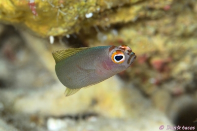 JUGEMテーマ:水中写真 穴の中で暗くて撮りにくかったので、ピントが合ってるのがこれしかありません。 リュウキュウニセスズメでいいのかな? 条鰭綱 スズキ目 メギス科 ニセスズメ属 リュウキュウニセスズメ 石垣島 荒川沖 水深5m サイズ2cm 2015年12月 撮影:Don☆tacos