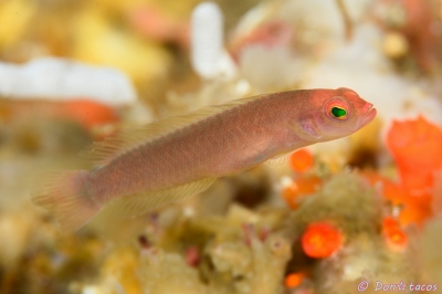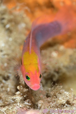 JUGEMテーマ:水中写真 穴の中の撮影は、ライトを嫌うので大変。 条鰭綱 スズキ目 メギス科 タナバタメギス属(Lubbockichthys属) ロブスト・ファインスケイルド・ドッティーバック セブ マクタン島 マクタン沖 水深30m サイズ5cm 2016年1月 撮影:Don☆tacos